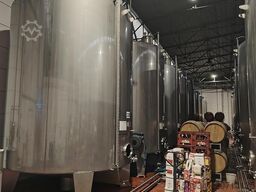 Rezervor din oțel inoxidabil de capacitate mare pentru depozitarea sau fermentarea lichidelor în medii vinicole, alimentare sau procese industriale.
