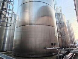 Rezervor din inox de mare capacitate pentru depozitarea sau fermentarea lichidelor în crame sau unități de procesare alimentară.