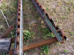 Mașină de ambalare și stivuire pentru cherestea fasonată. Sistemul de transport cu role pentru manipularea pachetelor finite este, de asemenea, inclus în livrare.
